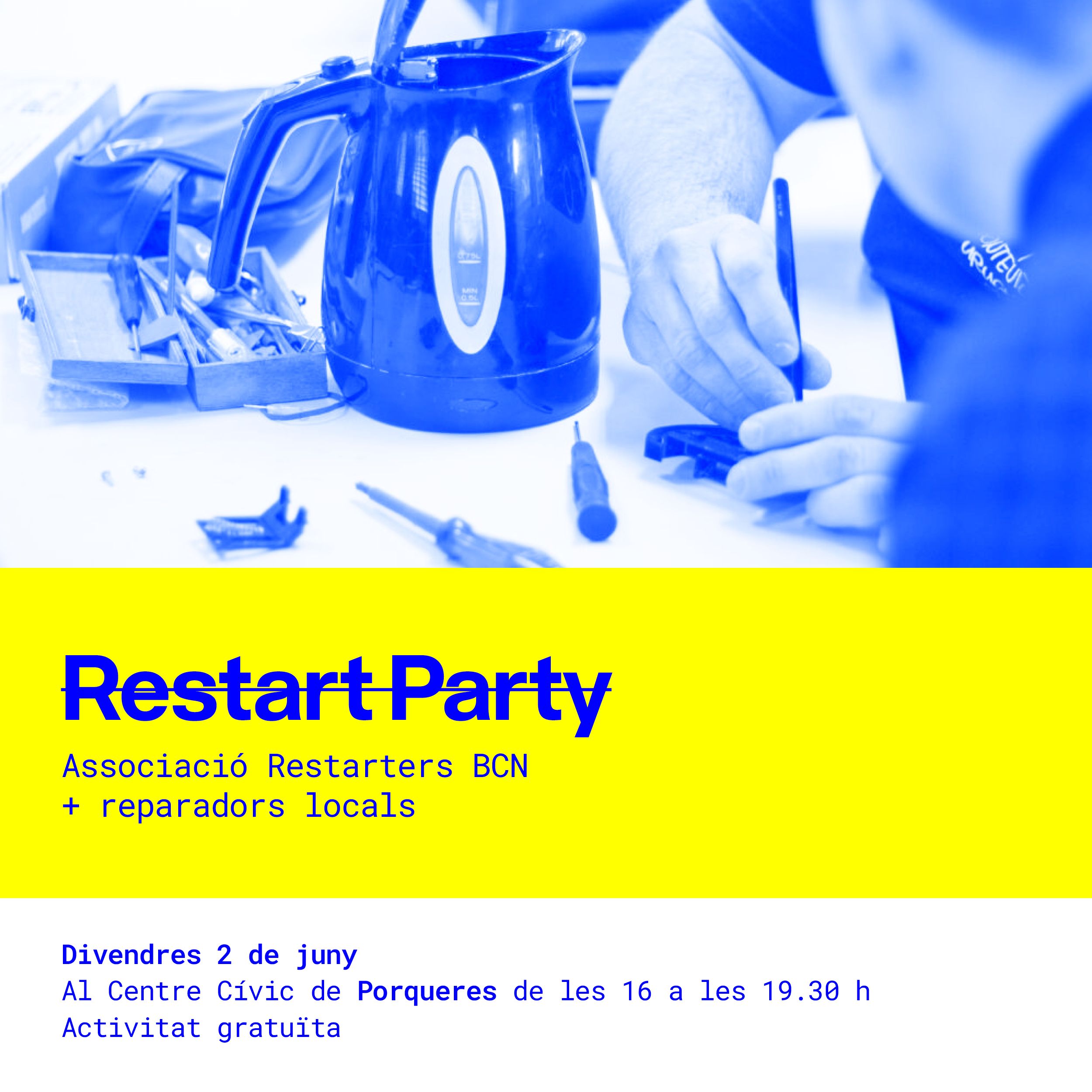 Tens el túrmix espatllat i no saps com arreglar-lo? L'aspiradora ja no aspira res? Vols arreglar la torradora en comptes de comprar-te'n una altra? La Restart Party està aquí per ajudar-te!