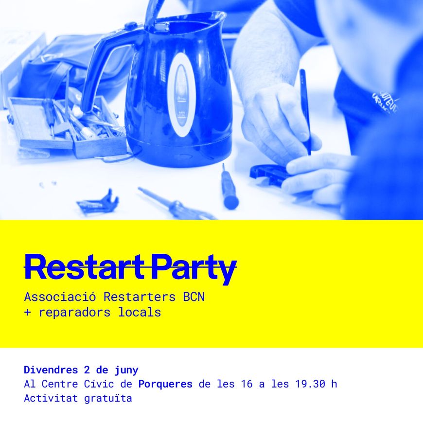 Una Restart Party és un esdeveniment públic en el qual voluntaris amb habilitats tècniques ajuden les persones assistents a aprendre a reparar els seus aparells elèctrics i electrònics espatllats. L’ambient és relaxat, lúdic, comunitari, de manera que les persones que esperen a que les atenguin poden picar o prendre alguna cosa, conversar entre elles o conèixer més coses sobre el projecte. L’objectiu d’una Restart party és que les persones assistents prenguin consciència que els aparells es poden reparar i de com de fàcil pot arribar a ser en alguns casos allargar la vida dels nostres dispositius. Sensibilitzar-se, per tant, del gran estalvi econòmic i ecològic del qual en podem ser responsables.